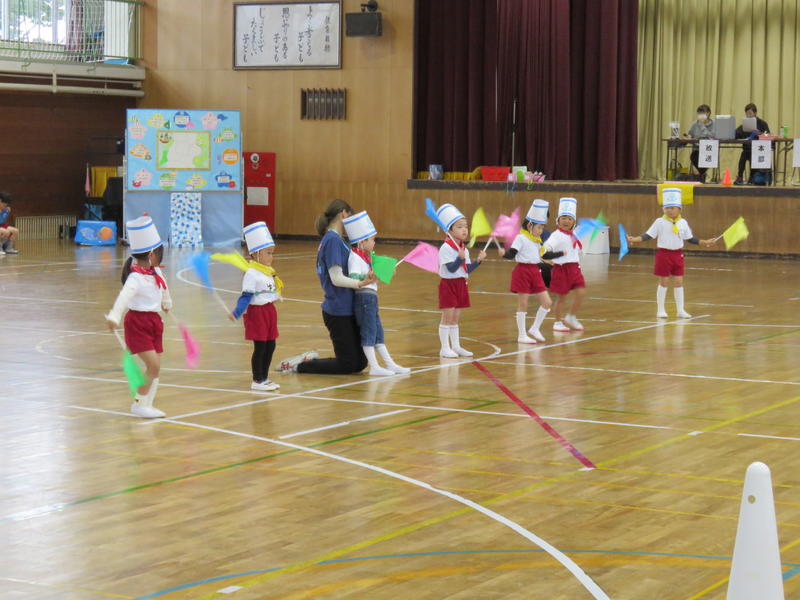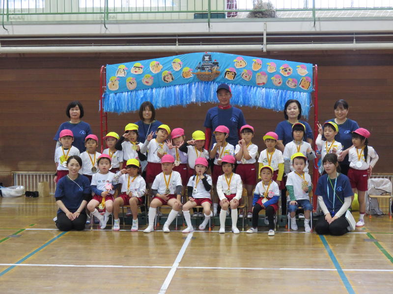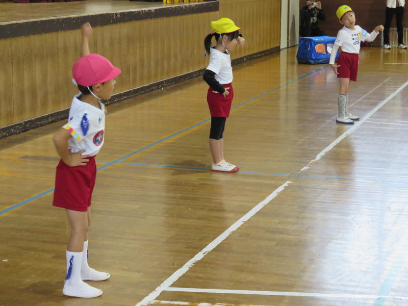 年少 うさぎ組さんも、この半年間の幼稚園生活の中で、いろいろなことを経験し、跳んではねて踊って、自分たちでできることがたくさん増えました。人数は少ないけど、一人一人競技・ダンスに頑張っています 応援お願いいたします