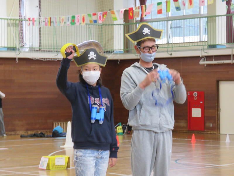 ★「リレー」が終わると地図が完成しました。あれ? 地図の裏に何か書いてあります! 宝箱があるんだって!