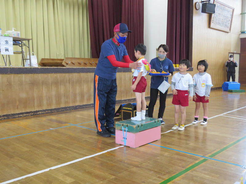 ☆最後の種目は、わんぱくだんからプレゼントされたバトンを使って、うさぎ組は親子でのリレー、きりん組はトラック1周リレー。それぞれ白熱した争いでした。(写真がなくてごめんなさい)