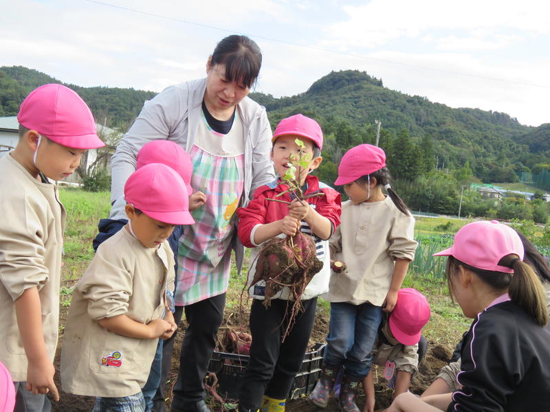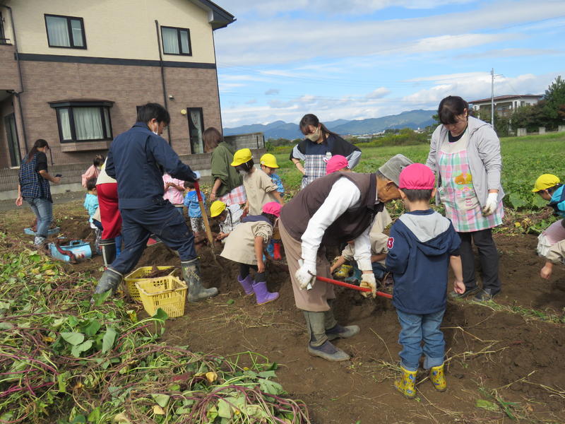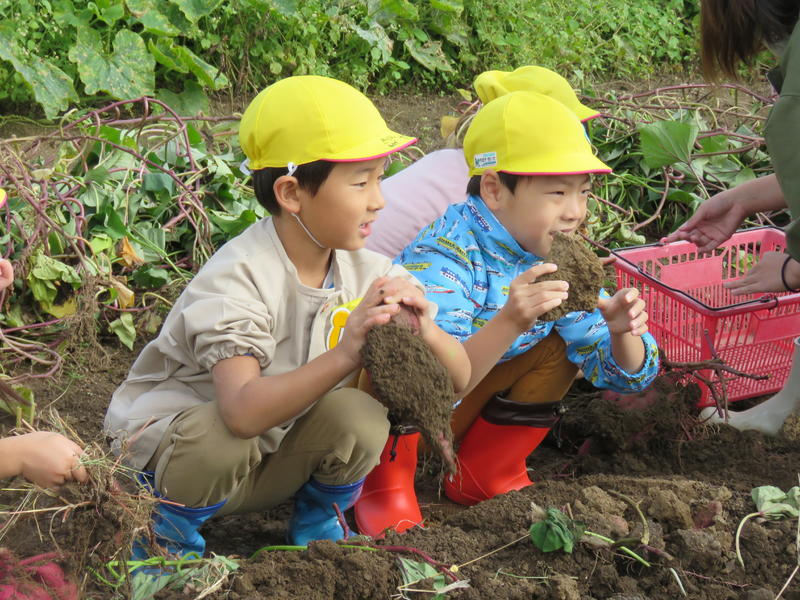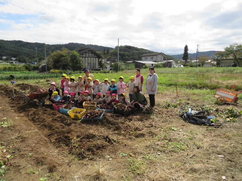 畑の世話をすっかりお世話になった清野さんはもちろん、4人のお母さんそしてお父さん1人にも協力していただき、でっかい芋を、うんとこしょ!どっこいしょ!!と掘り出しました。