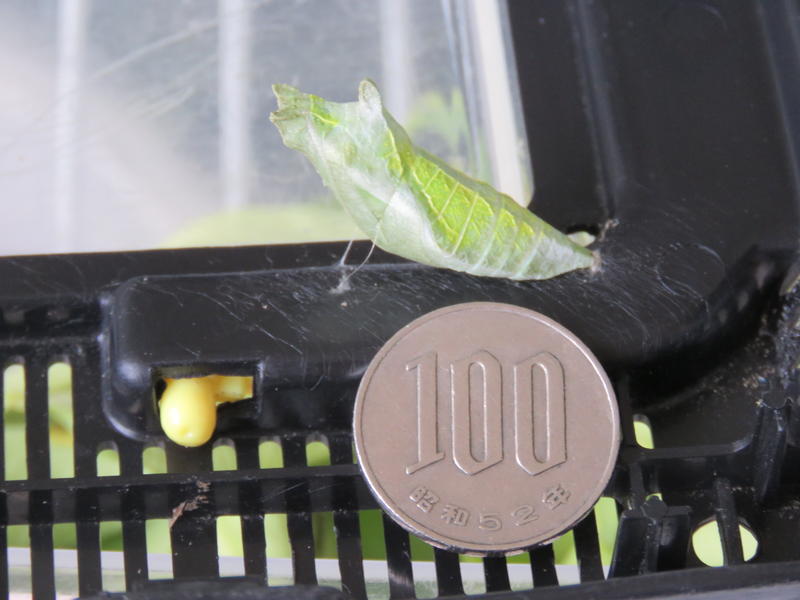 捕まえて観察していると、右の写真のように「さなぎ」になりました。