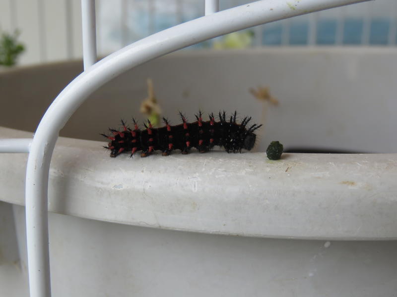 ①<キ?ナミ 不明>アゲハチョウの蛹(さなぎ) ②ツマグロヒョウモン(チョウ)<食草がパンジー>