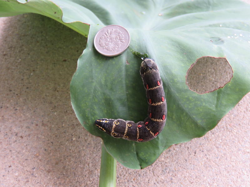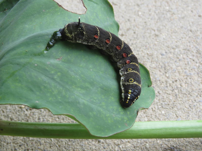 里芋の葉っぱをムシャムシャ食べて、今はどこかに逃げ出してしまいました!残念この後が見たかった!