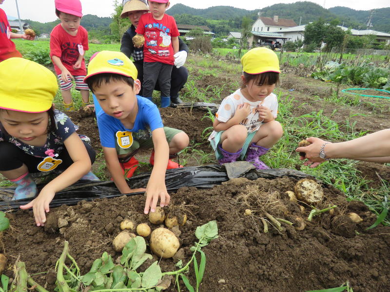 昨日の「水泳教室」に続いて、今日は「じゃがいも掘り」を行いました。