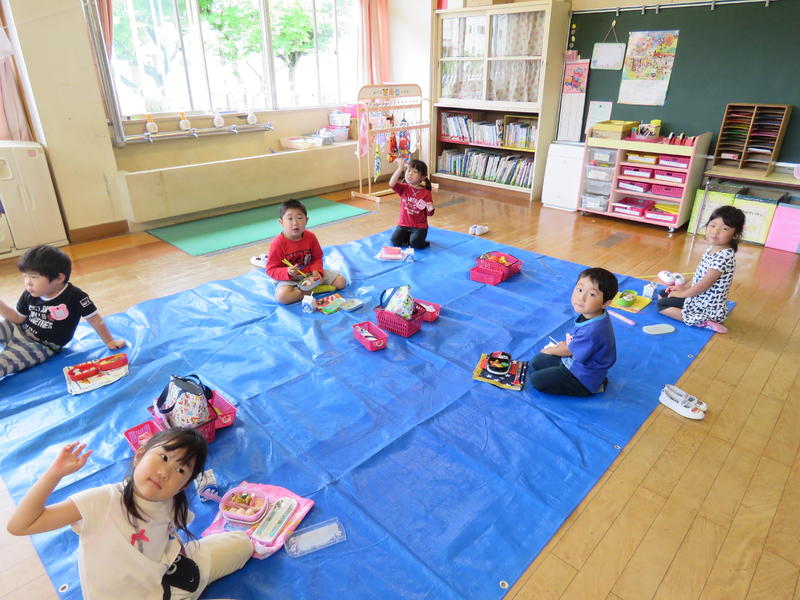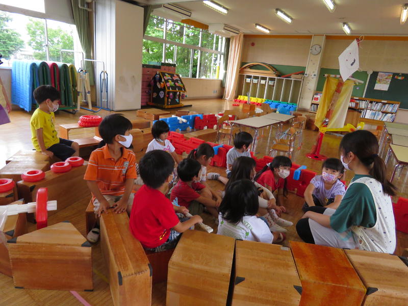 毎日の雨で、園庭はドロドロ・水たまり。元気に外に出ての遊びができません。以前はじめじめした空気でしたが、今日は涼しいくらいです。