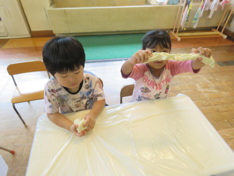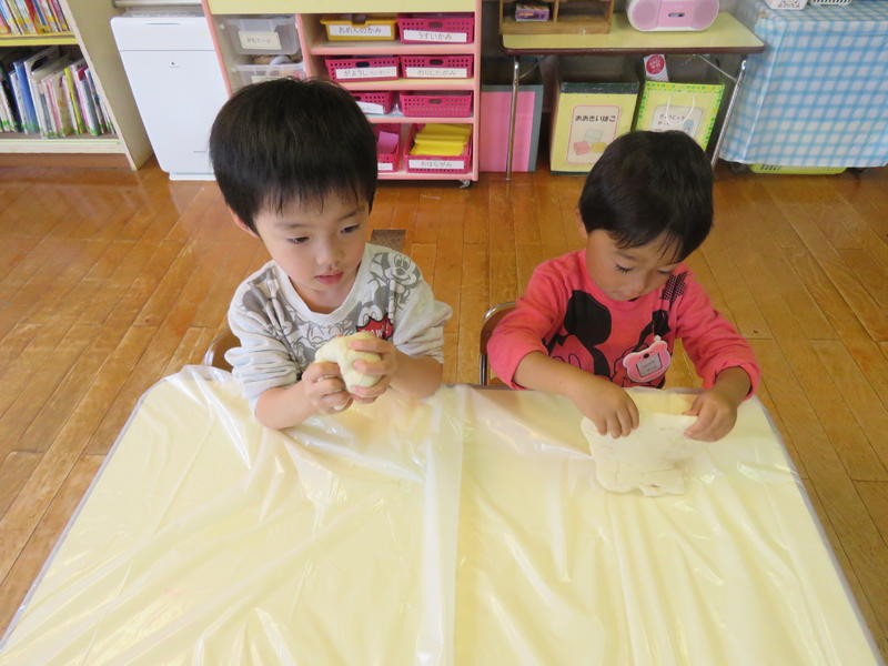 【うさぎ組】<年少>「小麦粉粘土」でなにつくろ~?