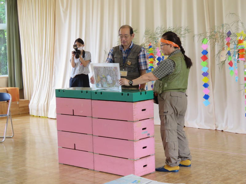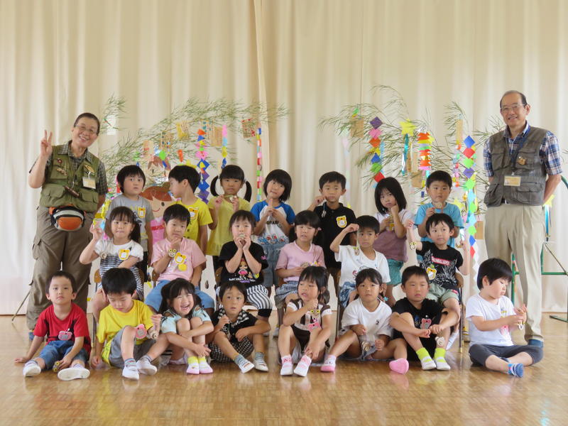 福島県の事業として「エコ七夕 もりの案内人派遣事業」が、午前中行われました。事業の目的は、『小学校入学前の子どもたちの地球環境を想うやさしい心の育成を図るもの』となっています。