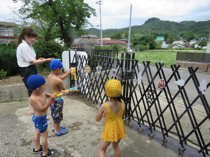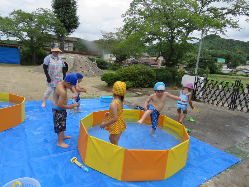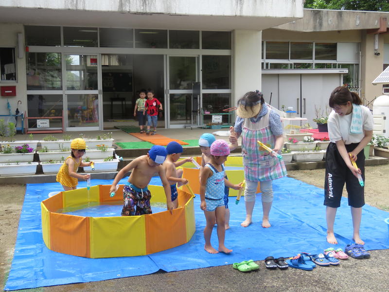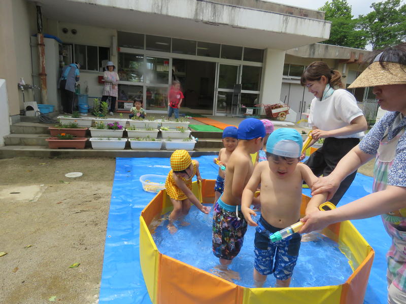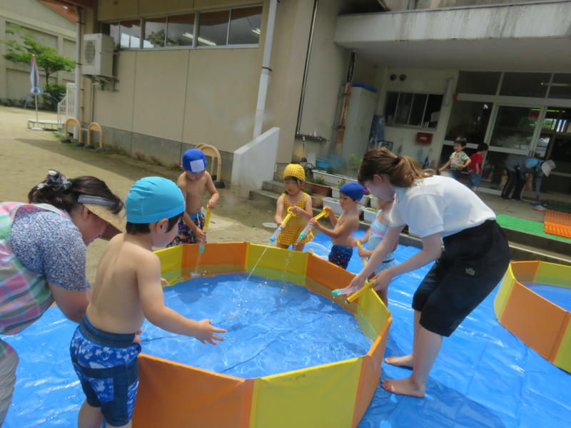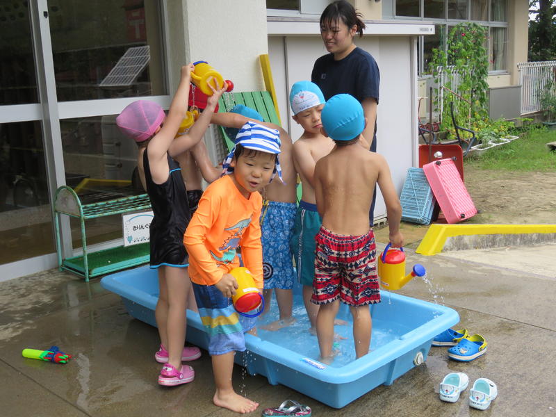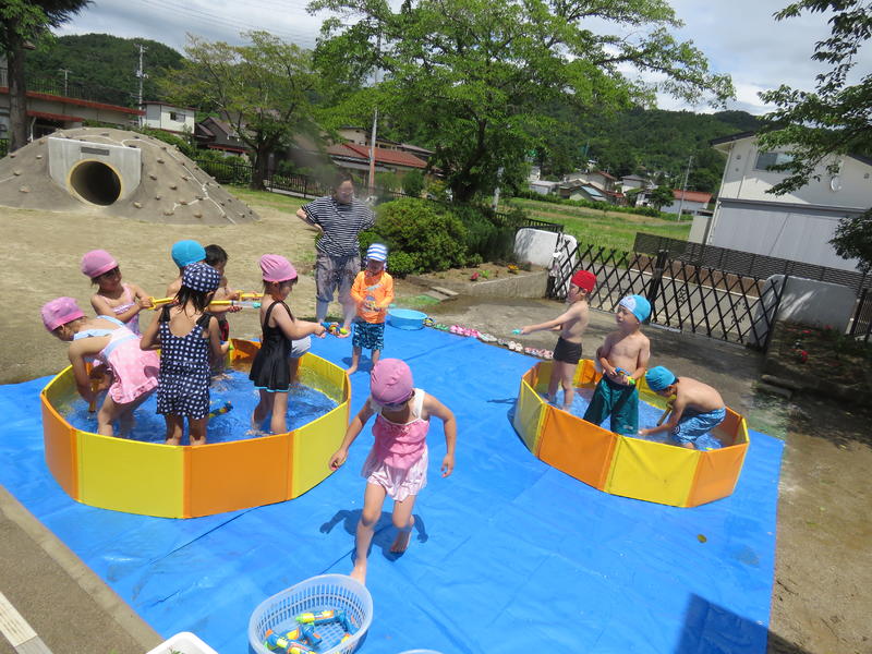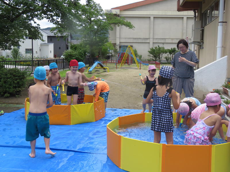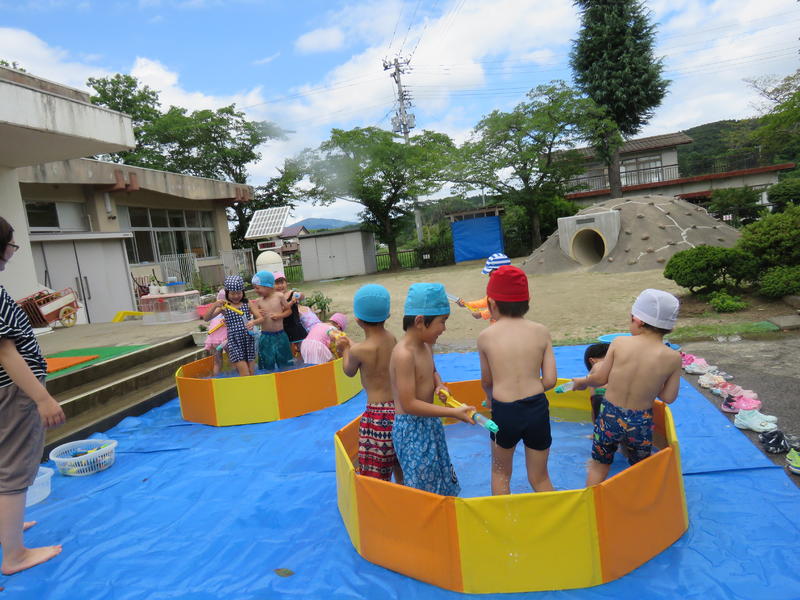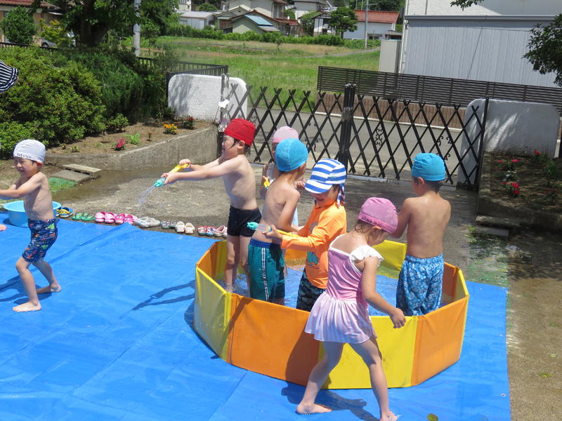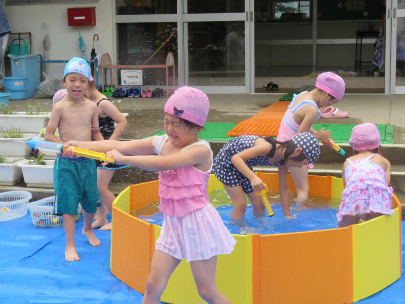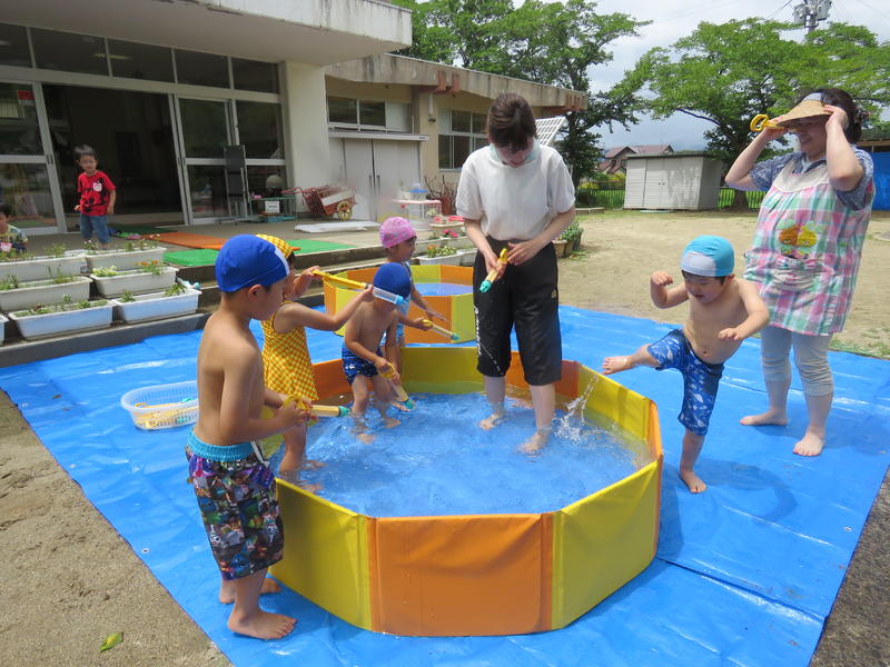 水は少し冷たかったけど、みんな楽しく水鉄砲で遊んだり、水の感触を楽しんでバシャバシャしたりしていました。