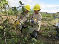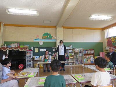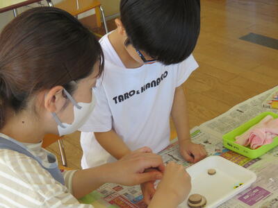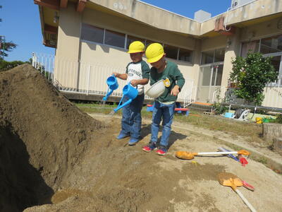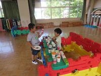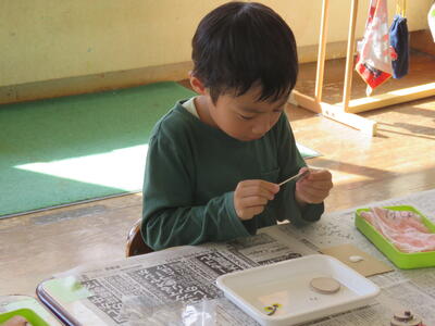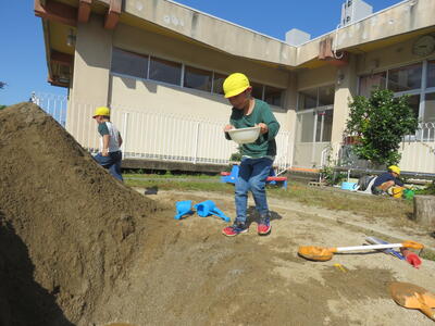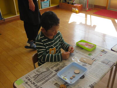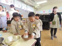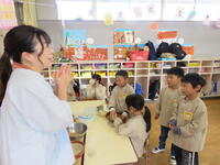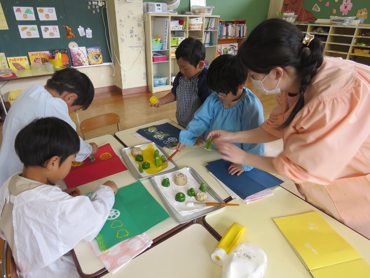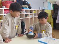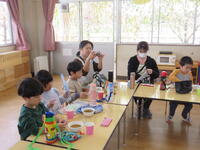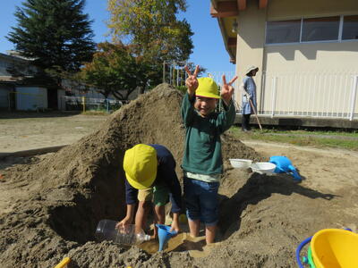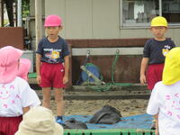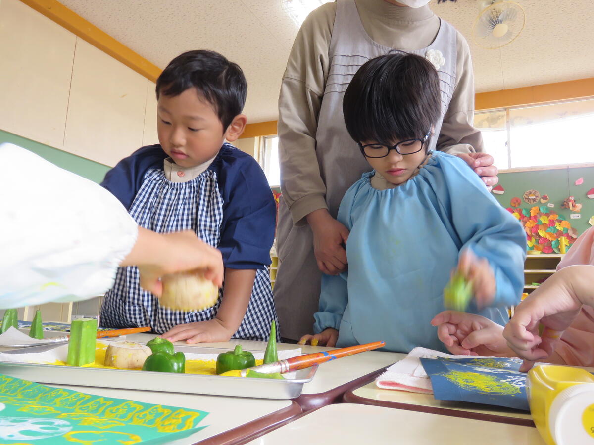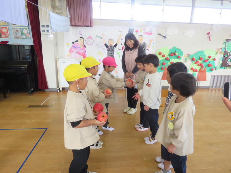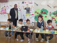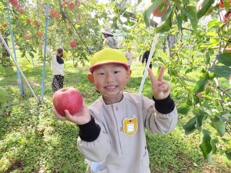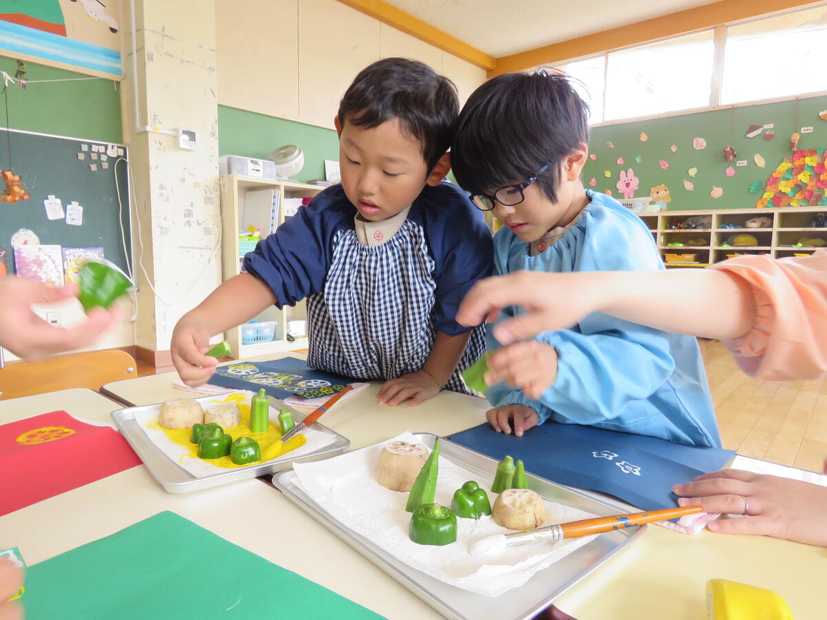 はじめの会の後,焼き芋をごちそうになりました。甘い焼き芋をほおばりニコニコの笑顔でした。その後,好きな遊びをしたり野菜を収穫したりと存分に楽しみました。お昼にはみそ汁やフルーチェも食べながら交流を深めました。