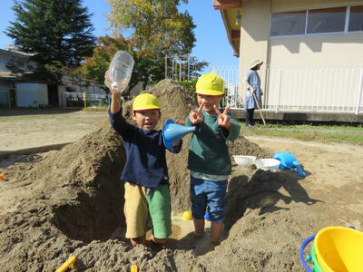 2024年11月8日 08時34分 昨日は,今年度最後の三園交流に庭塚幼稚園に行ってきました。4月26日(金),十六沼公園での親子遠足を皮切りに,運動会練習や運動会などを含め8回の交流を重ねてきました。