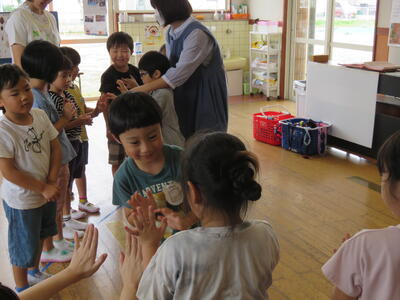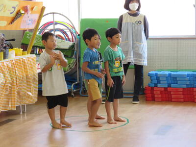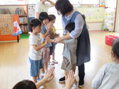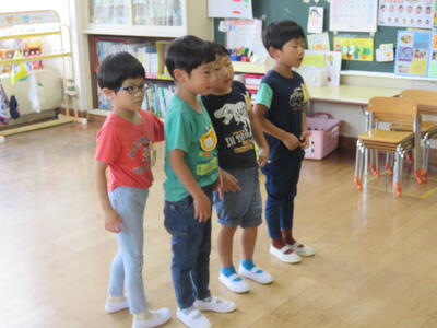 夏休み中は,大きな事故やケガもなく,元気に登園した姿を見て,うれしくなりました。体も心も一回り大きくなった姿に驚きました。おかげさまで無事に2学期のスタートを切ることができました。
