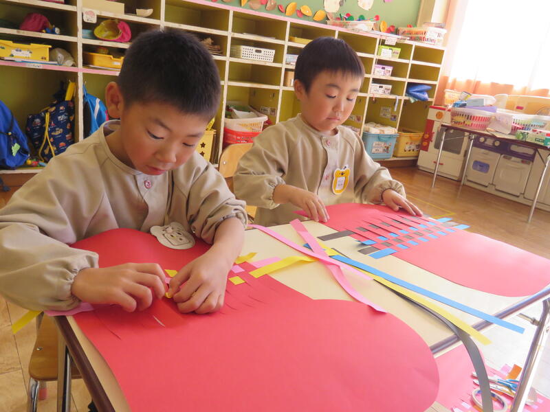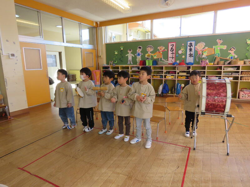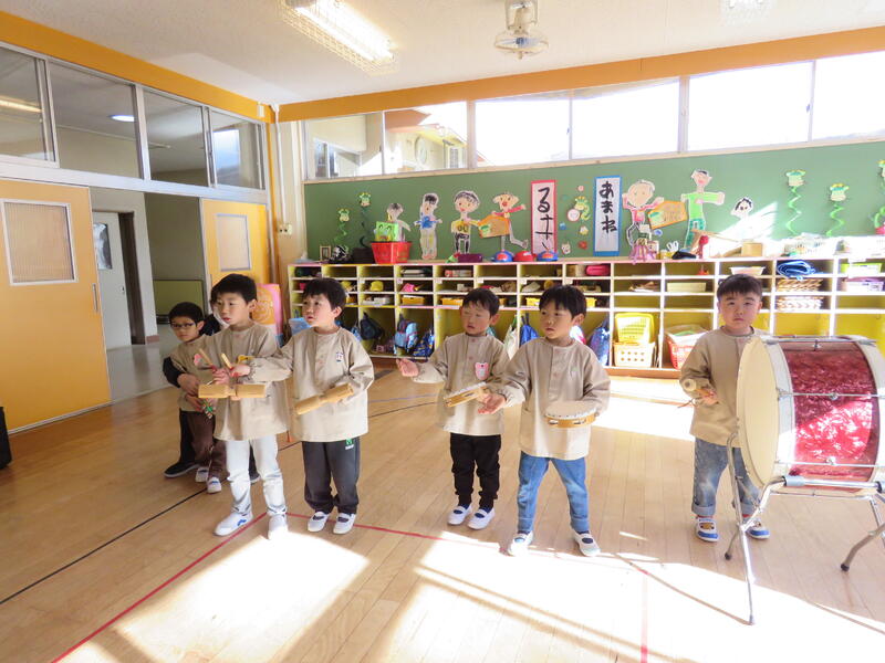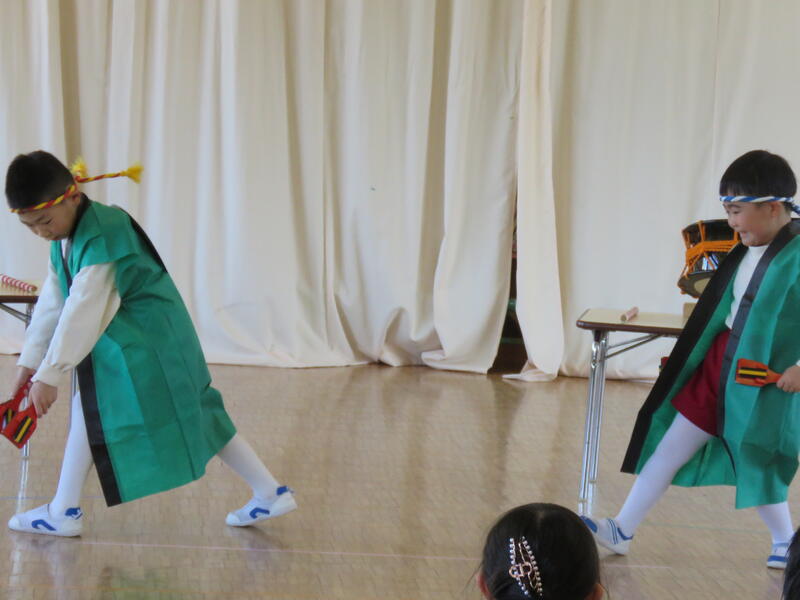 この「会」の準備と並行して、来週土曜日(10日)に予定している、1年間の幼稚園生活の総まとめとしての「生活発表会」に向けて、音楽・運動・劇などの練習も頑張っている子どもたちです
