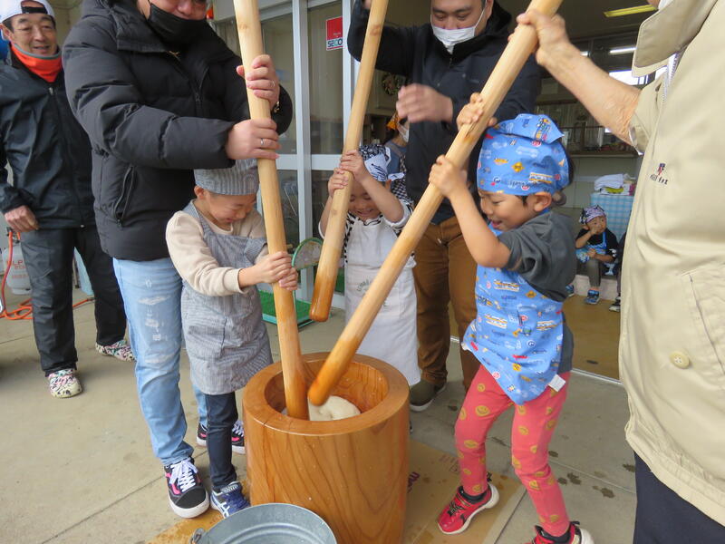 毎年恒例行事として「もちつき」は実施していますが、やっぱり臼・杵でついたお餅は格別な味わいでした上手についたお父さん(おじいさん)・上手にお汁を作ったお母さん、そして、上手に教えていただいた清野さん、ありがとうございました