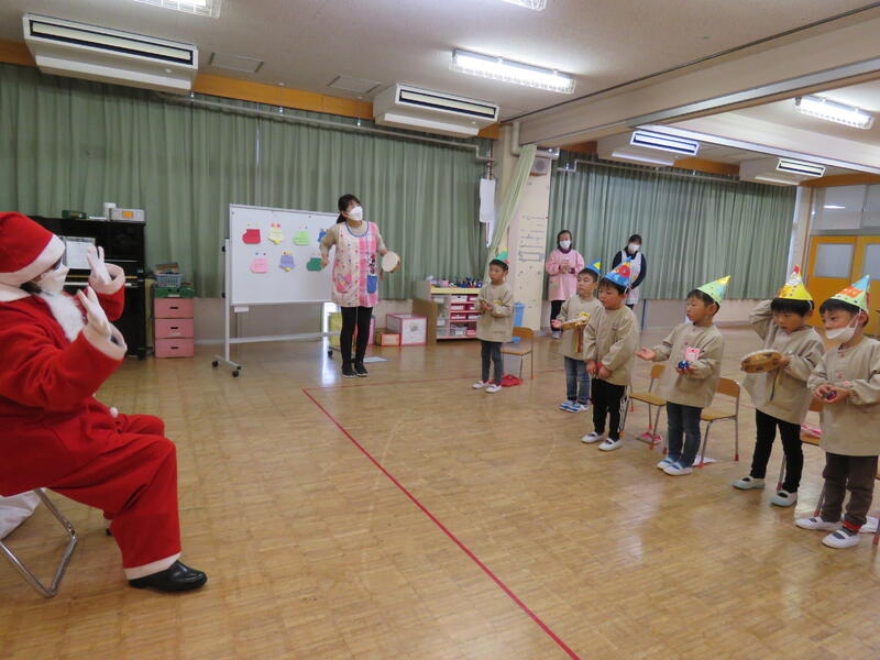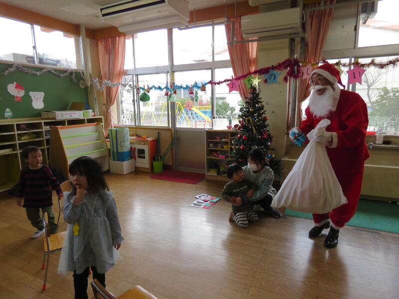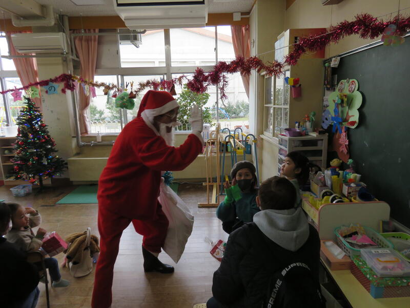 なんと、岡山幼稚園に、一足早くサンタさんが、よい子の「なかよし組」のみんなのために、プレゼントを持って、空を飛んでやって来てくれました 子どもたちは、びっくりドキドキ大喜び ありがとうサンタさん そして、久しぶりの「のらねこぐんだん」もありがとう