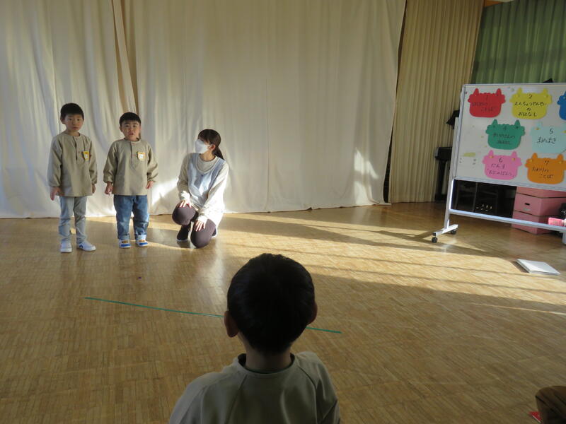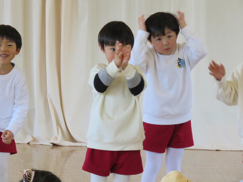2024年2月21日 07時51分昨日の<パート1>に続いて、発表会の後半<パート2>をお届けします。保護者の皆さんにお届けした「お知らせ」はこちらになります発表会2.pdf 年長・年少それぞれの発表演目はもちろん、合同の発表についても、みんな練習に一生懸命取り組み、発表会全体の時間が長くなってしまいましたが、最後まで精一杯の発表ができたことは、子どもたち一人一人の成長を感じました改めて、保護者の皆様のご理解とご協力に感謝申し上げます