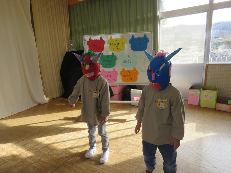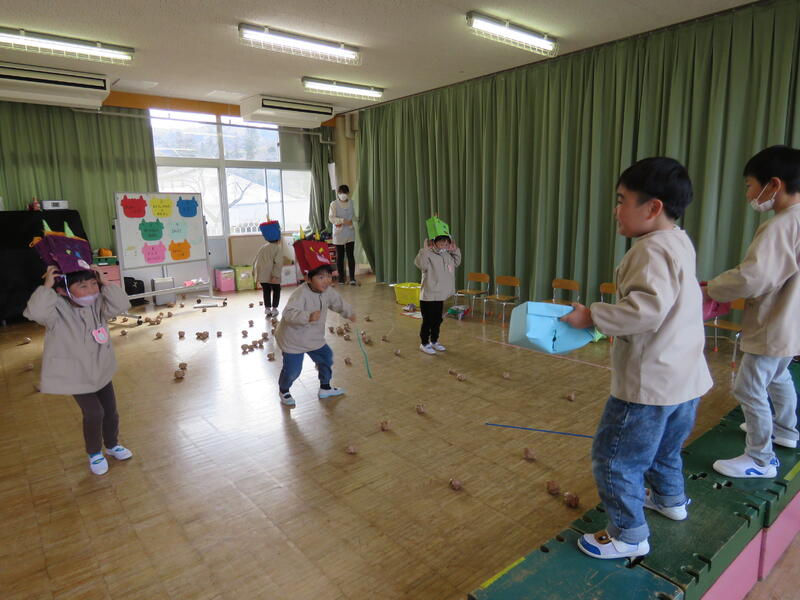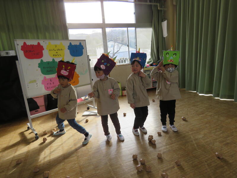 今日、幼稚園で行った1日早い「豆まき」の様子をお届けします。保護者の方にもお届けした「お知らせ」はこちらです豆まき.pdf