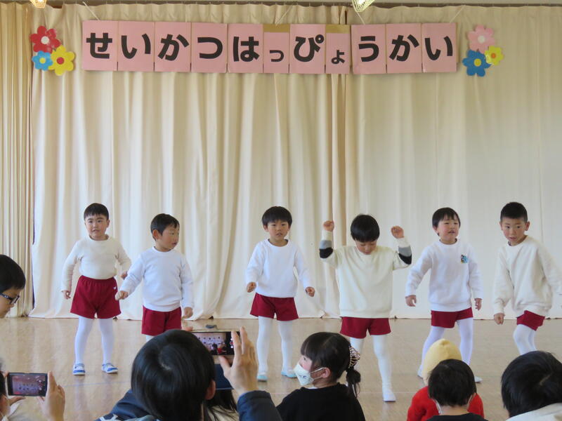 年少5名・年長2名と少人数ではありまっすが、少人数だからこその子どもたち一人一人が「主役」の発表会となりました。保護者・ご家族の皆さんからの温かい声援もありがとうございました。