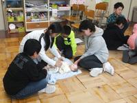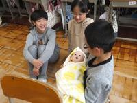 本日、総合的な学習の時間にキャリア教育の一環として国際ビジネス公務員大学校の先生方に来ていただき、職業体験出前講座を行いました。保育士の資格をお持ちの先生方から、この後学習する保育所での体験活動に向けた心構えなどをご指導いただきました。まず、最初に幼稚園、保育所等の違い、赤ちゃんの人形を使った疑似体験などをやりました。赤ちゃんを抱いて体重や身長を予想したり、オムツ替えも体験をしたりしました。また、保育所で行っているパネルシアターの実演をしていただきました。子供たちも園児になったようにお話の世界に引き込まれていました。最後に、保育所で子どもたちと活動する上での心得を教えていただきました。とても有意義な学習になりました。