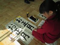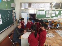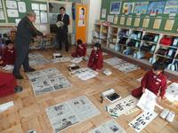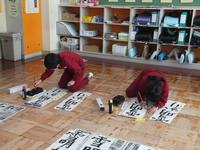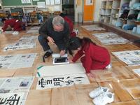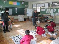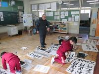 3年生の課題である「お正月」という字を教えていただきました。子どもたちそれぞれに、名前入りのお手本を準備していただき、筆の持ち方、筆の運び方などていねいに指導していただきました。子どもたちも最初に書いた字が、練習によって変わってくるのを実感でき、とても意欲的に練習することができました。明日は4年生に指導いただきます。
