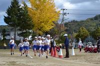 2019年11月15日 11時08分11月15日(金)弟3回目の防災訓練を行いました。今回の想定は、強い地震が発生後、校舎内から出火したことによる緊急避難としました。特に今回は、火災出火に伴って発生する煙に反応して閉じた防火壁を、安全に通過して避難できることを主眼にして行いました。子どもたちは煙を防ぐために口にハンカチをあて、上手に避難することができました。ご家族で行かれる商業施設や公共施設にも、火災防止にかかわる仕組みが色々あります。そういった施設で火災に遭遇したときなども想定して、避難の仕方などお話いただけるとありがたいです。