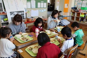 来年度入学するお子さんや保護者の方に小学校の給食を知ってもらおうという趣旨です。