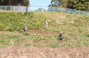 用務職員による共同作業として、本校裏山の除草をしていただいています。