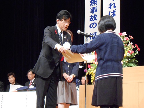 第46回福島市交通安全市民大会にて、「福島市長表彰 優良交通関係団体」を受賞しました。