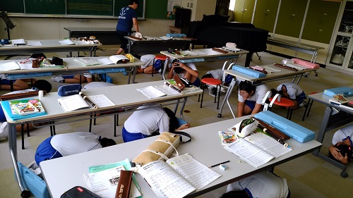 本日、休み時間に、事前予告なしの防災訓練を行いました。