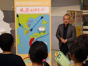 気象予報士の「斎藤恭紀」さんにも、本物のボードを使って、天気予報の様子を説明していただきました。