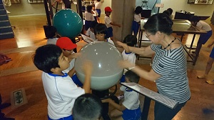 初めのうちは、屋外活動で乗り物に乗っていたのですが、途中から雨が降り出し始め、室内での活動に変更しました。
