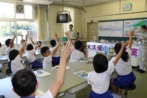 初めに、クイズを行い、福島市全体では、1日にプール360杯分の水を使うことなどを知り、その量に驚いていました。