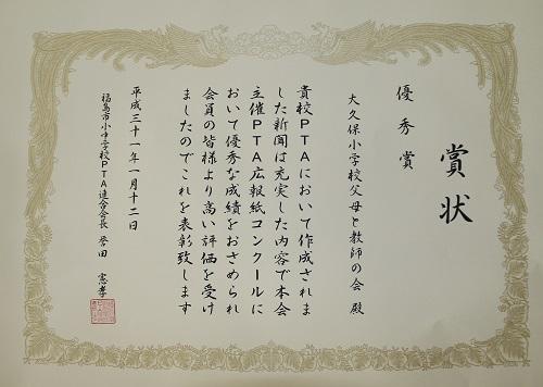 福島市小中学校PTA連合会広報紙コンクール 優秀賞