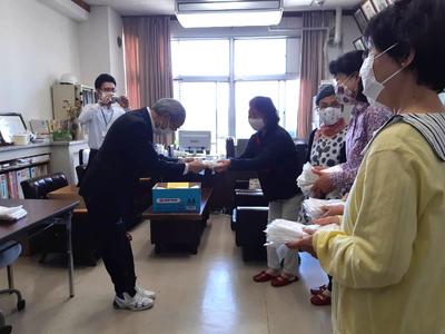 本日、信夫学習センターより「地域でマスクをつくって、学校応援プロジェクト」の一環として、全児童分の「手作りマスク」をいただきました。
