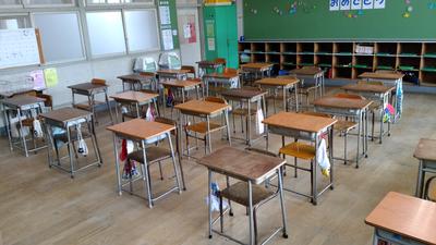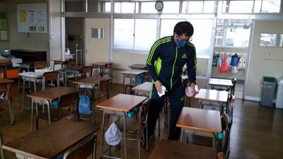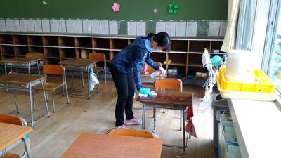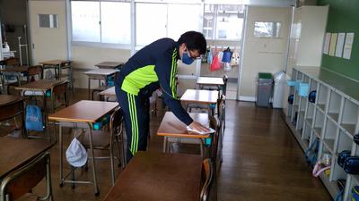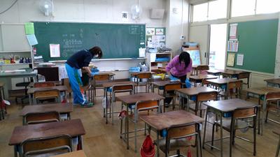 ※ 机、いす、子どもたちが手を触れる場所を消毒します。