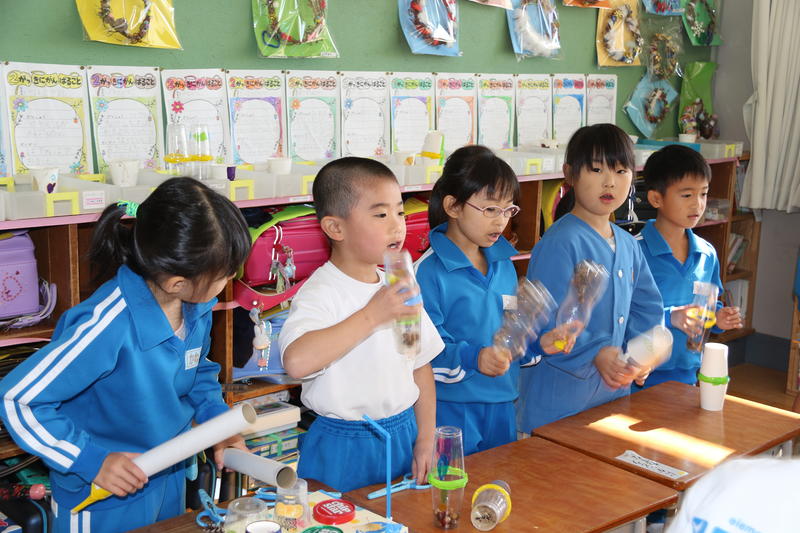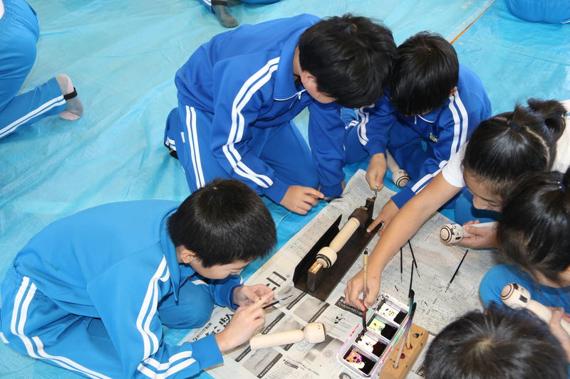 1年生では、秋を探しての発表会へ向けての練習、4年生では、こけしの絵付け体験を行いました。