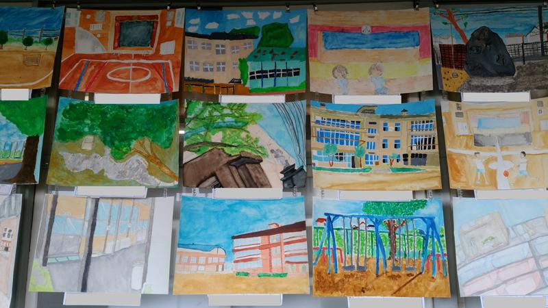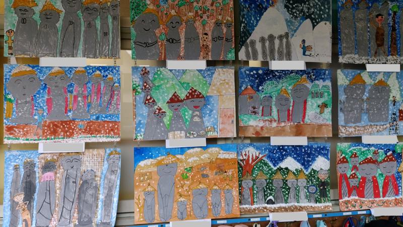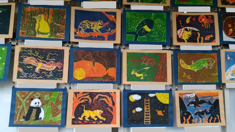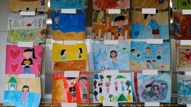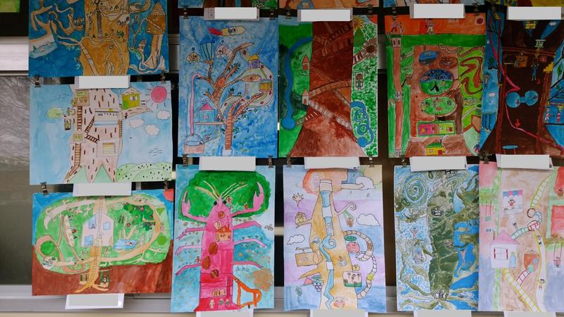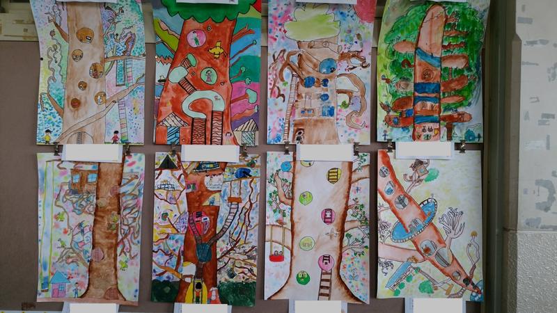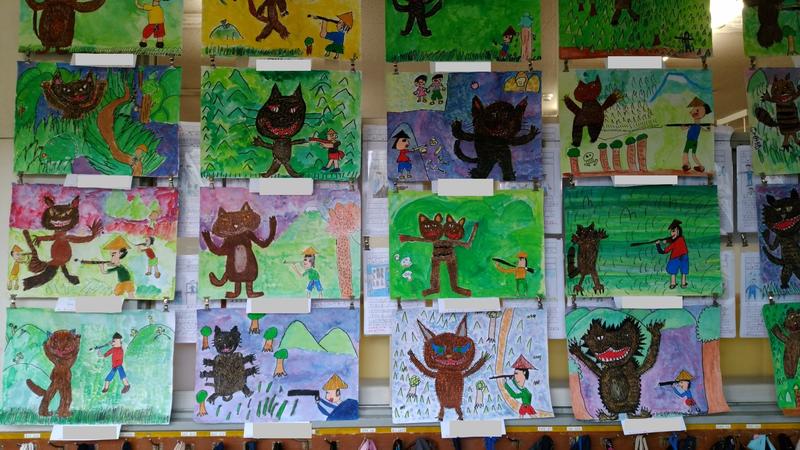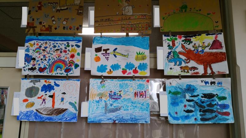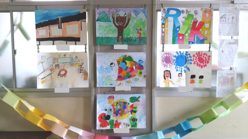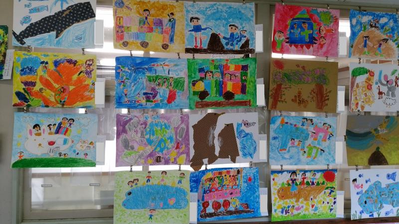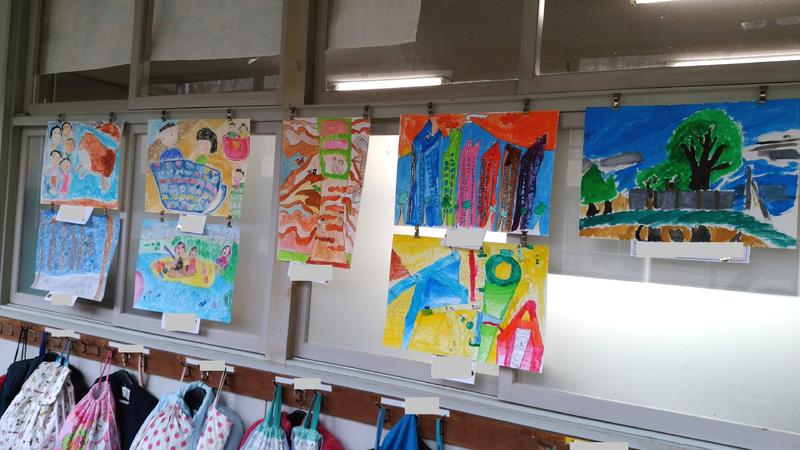 子どもたちの作品が、各教室の廊下に掲示してあります。