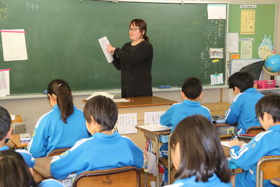 3年生社会科の学習で、前回に引き続き、地域のお年寄りの方々をお招きし、「昔の暮らし」について学びました。