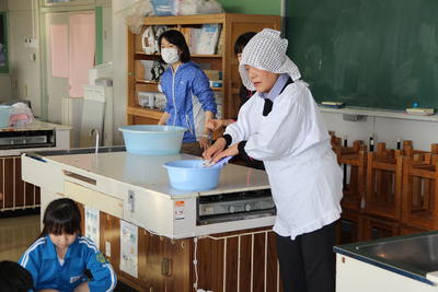 初めは、ぎこちなかった子どもたちですが、すぐに慣れ、上手に汚れを落としていました。