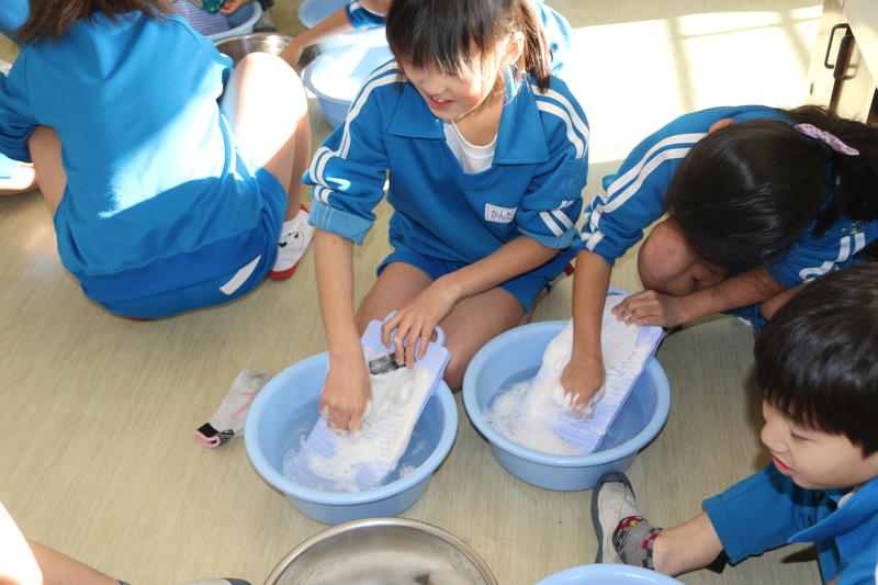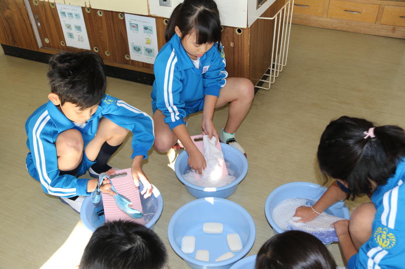 ご家庭でも、靴下やハンカチなど、小さなものは、手洗いにチャレンジしてみましょう。