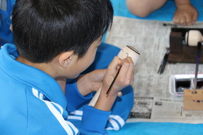 4年生が、森林学習の一環として 「こけし絵付け体験」を行いました。