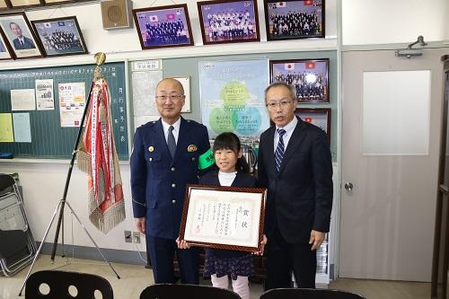 地位の見守り隊の方々に、毎朝見守られながら、安全に登校できる感謝の気持ちを素直に表したことが評価されました。