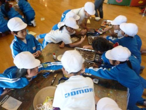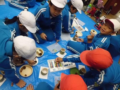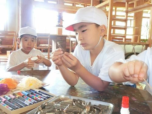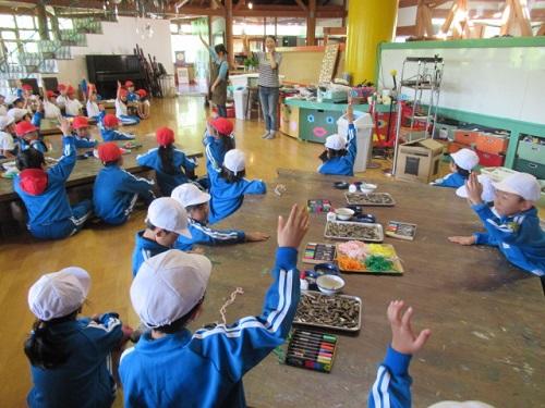 午前中は、ワークショップ「木の枝もっくん」を作成し、屋内施設「遊びと学びのミュージアム」を体験・見学しました。