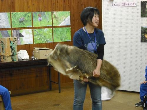 また、ネイチャーセンターでは、動物の毛皮や骨格など、めずらしいものを見せていただきました。