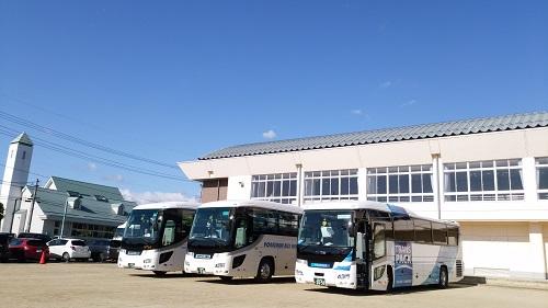子どもたちの思いが通じ、本日、青空の中、「フォレストパークあだたら」へ出発しました。