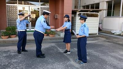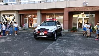 2019年9月26日 08時33分今朝、6年生児童が「1日交通警察官」としてパトカーに乗車し、交通安全を呼びかけました。
