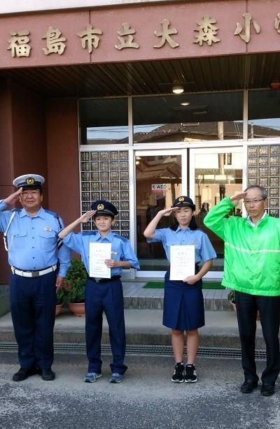 今朝、6年生児童が「1日交通警察官」としてパトカーに乗車し、交通安全を呼びかけました。