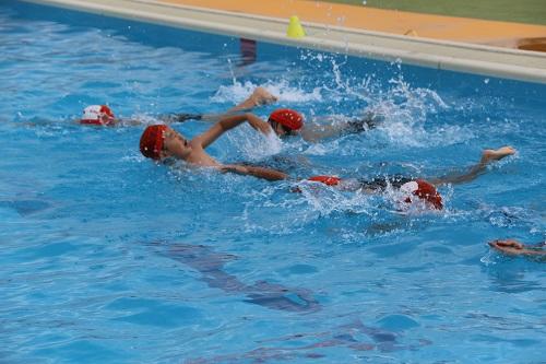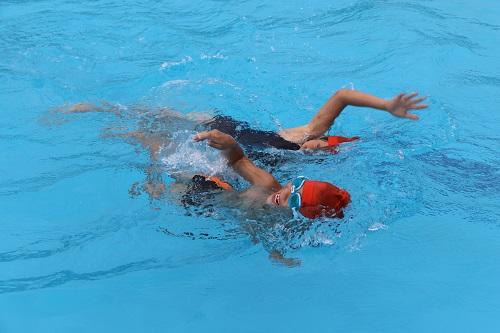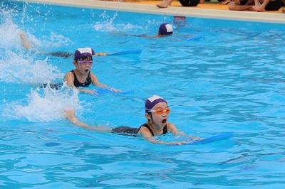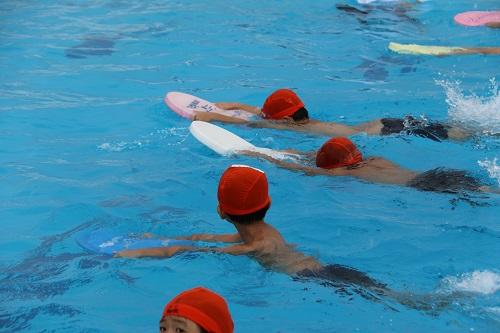 これまでの練習の成果を生かし、ビート板を使っての泳ぎや、25m、50mの自由形、平泳ぎに挑戦していました。