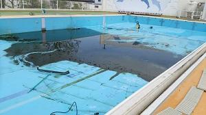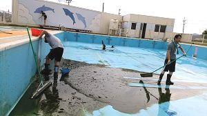 プールの底には、ヘドロや落ち葉などがたまっていました。