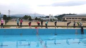 昨日の放課後、全職員でプールの清掃を行いました。