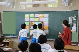 5・6年生の外国語活動では、ALT(Assistant Language Teacher)の先生と一緒に学習しています。